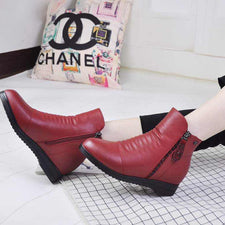 รองเท้าบูทหนังกันหนาวเสริมส้นภายใน ไซส์พิเศษ - Wedge Leather Ankle Boots
